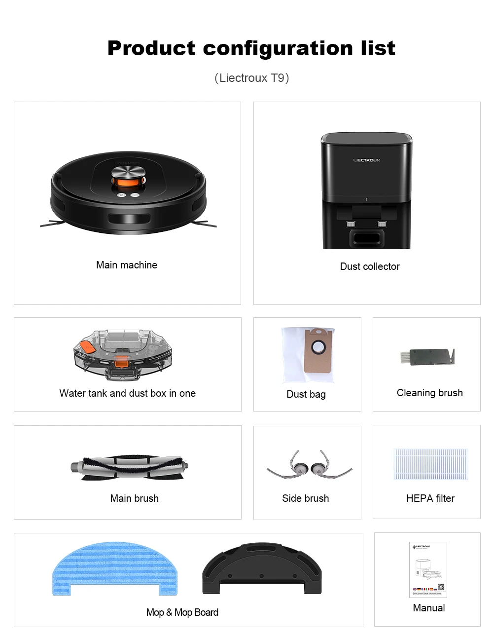 LDS Robot Vacuum Cleaner & Mop Combo Liectroux T9, Laser Lidar SLAM Navigation, Smart Home Wet & Dry Cleaning, With Self Empty Station, Multi-Floor Maps Storage, 6.5KPa Strong Suction, Carpet Boost, Anti-Tangle Brushes, Dual-Band WiFi 2.4/5GHz,3L Dustbag, 60 Days Hassle-free