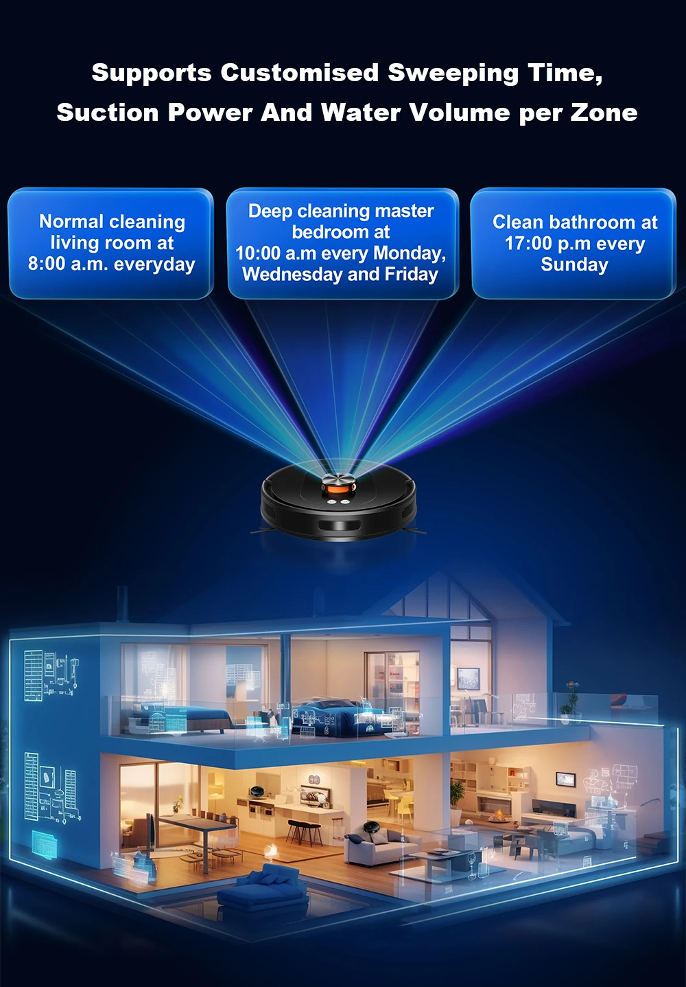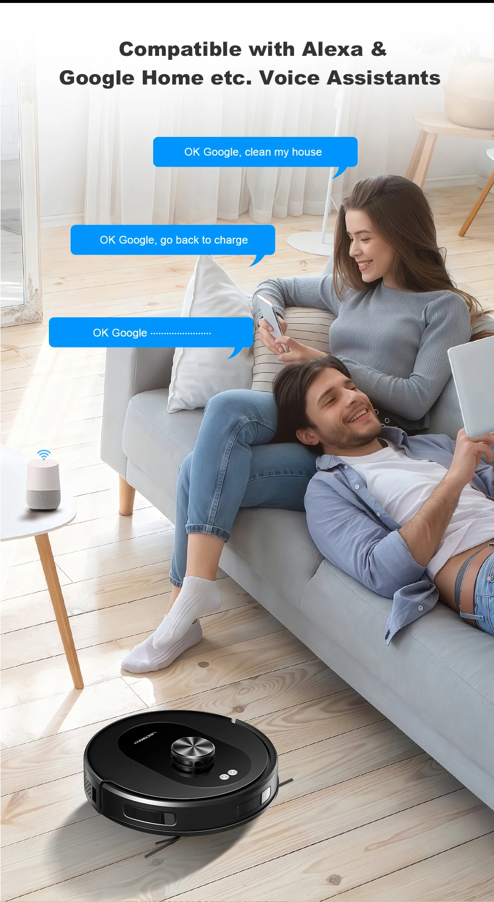 · 【Smart App and Voice Control】Use the Smart Life Tuya APP to monitor cleaning routes, set cleaning schedules, adjust suction and water levels, change cleaning modes, create restricted areas, saving 5 editable maps,and more. The robot vacuum cleaner will easily start or stop cleaning based on your custom map and voice commands from Alexa and Google Assistant, learning to let your life listen to you.
