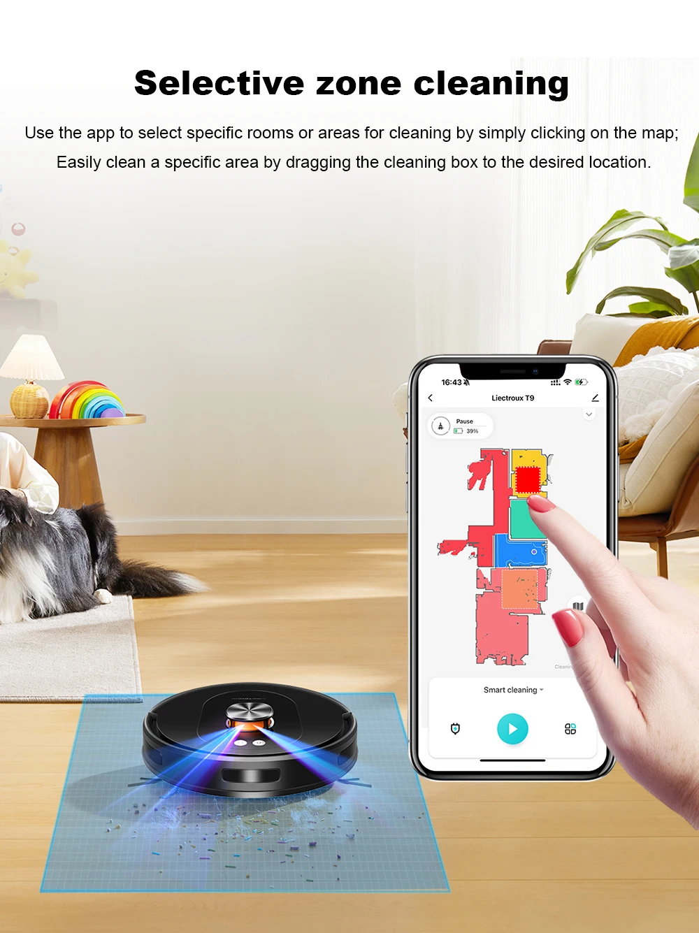· 【Dual-Band WiFi 2.4GHz & 5GHz Support】Faster, Stronger, and More Stable Connection Unlike most robot vacuums on the market that only support 2.4GHz WiFi, the T9 features advanced dual-band WiFi connectivity, compatible with both 2.4GHz and 5GHz networks. This means faster data transmission, lower latency, and a more stable connection even in environments with multiple smart devices. Control is smoother, real-time mapping is more responsive, and remote commands react instantly — delivering a superior smart cleaning experience built for modern households.